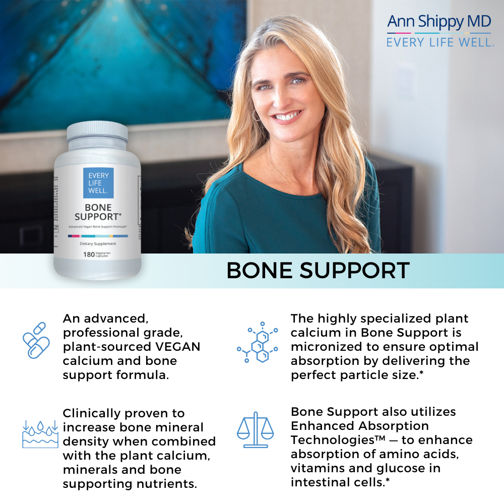 • The highly specialized plant calcium in Bone Support is micronized to ensure optimal absorption by delivering the perfect particle size.*