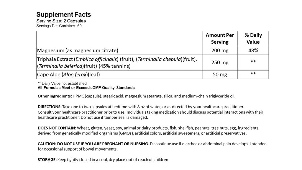 Cape Aloe is added to support normal GI transit time and stool bulk.