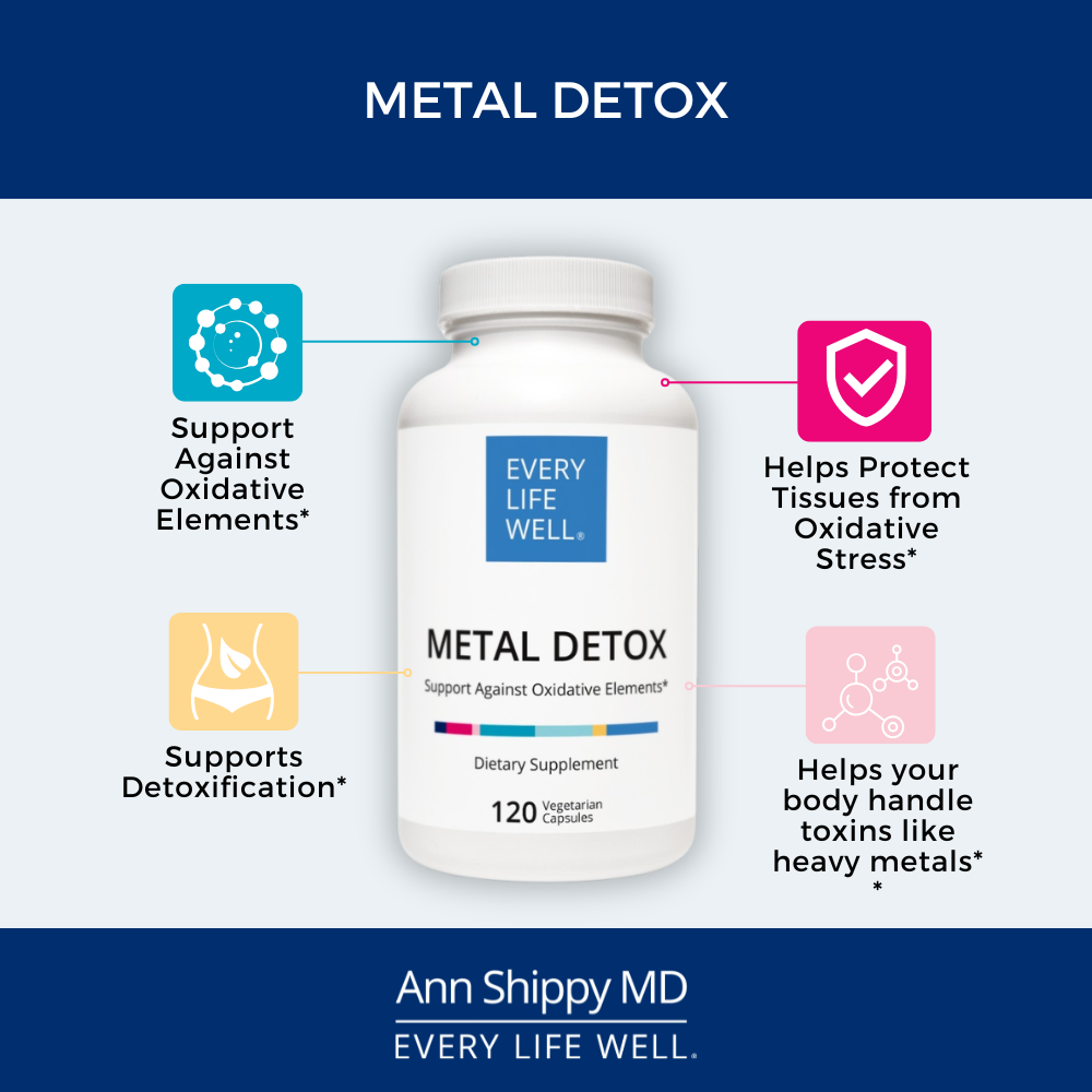 Metal Detox is designed to help the body rid itself of damaging oxidative elements. It features specialized ingredients, such as EDTA, Himalayan shilajit extract, chlorella, and antioxidant-stimulating nutrients. These ingredients perform in concert to support your health when your body is challenged by environmental toxins, such as heavy metals.*