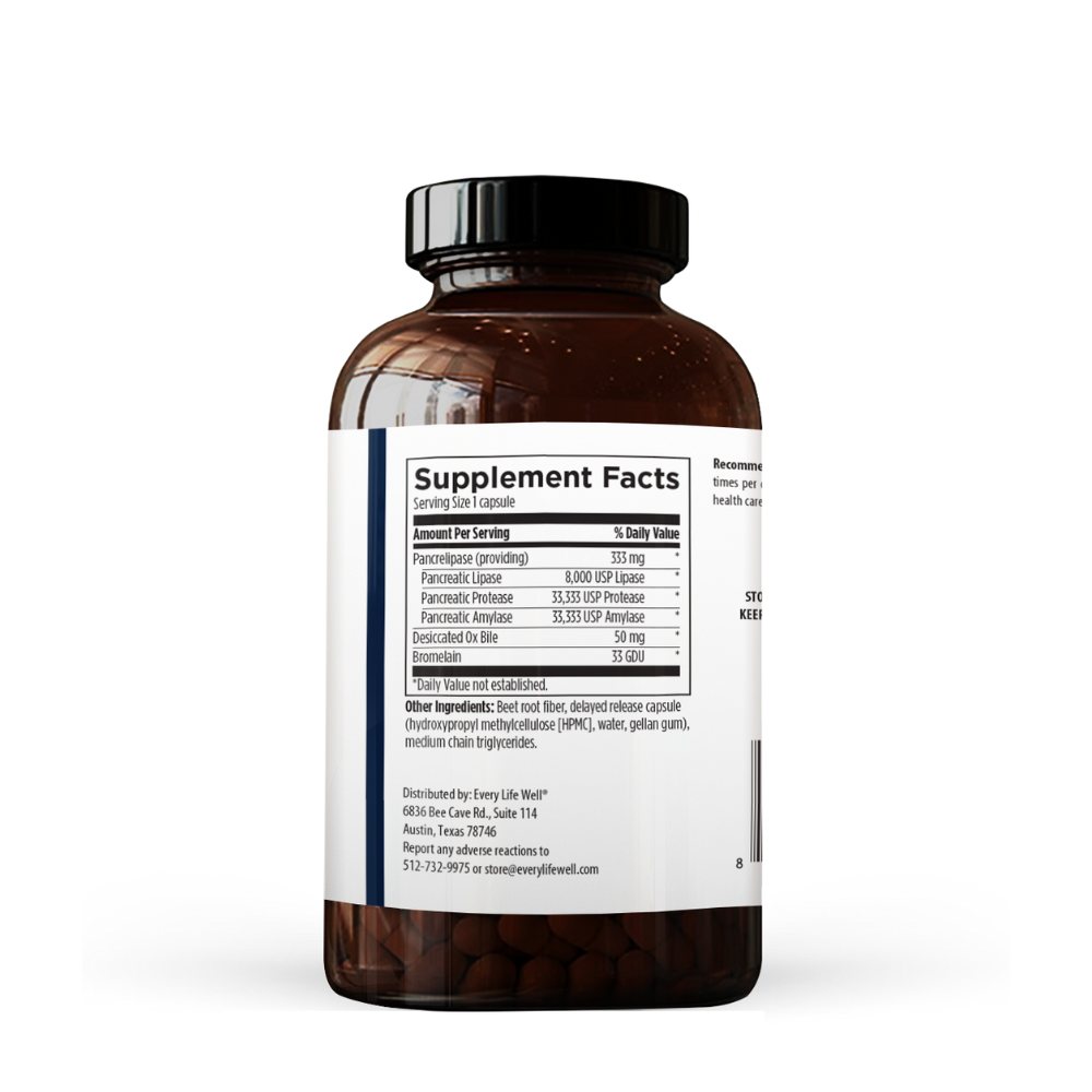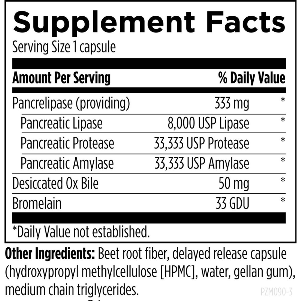 Recommended Use: 1 capsule with breakfast, lunch, and dinner, specifically protein and fat-containing meals.