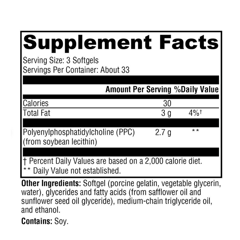 - Polyenylphosphatidylcholine (PPC) (from soybean lecithin) – 2.7 g **