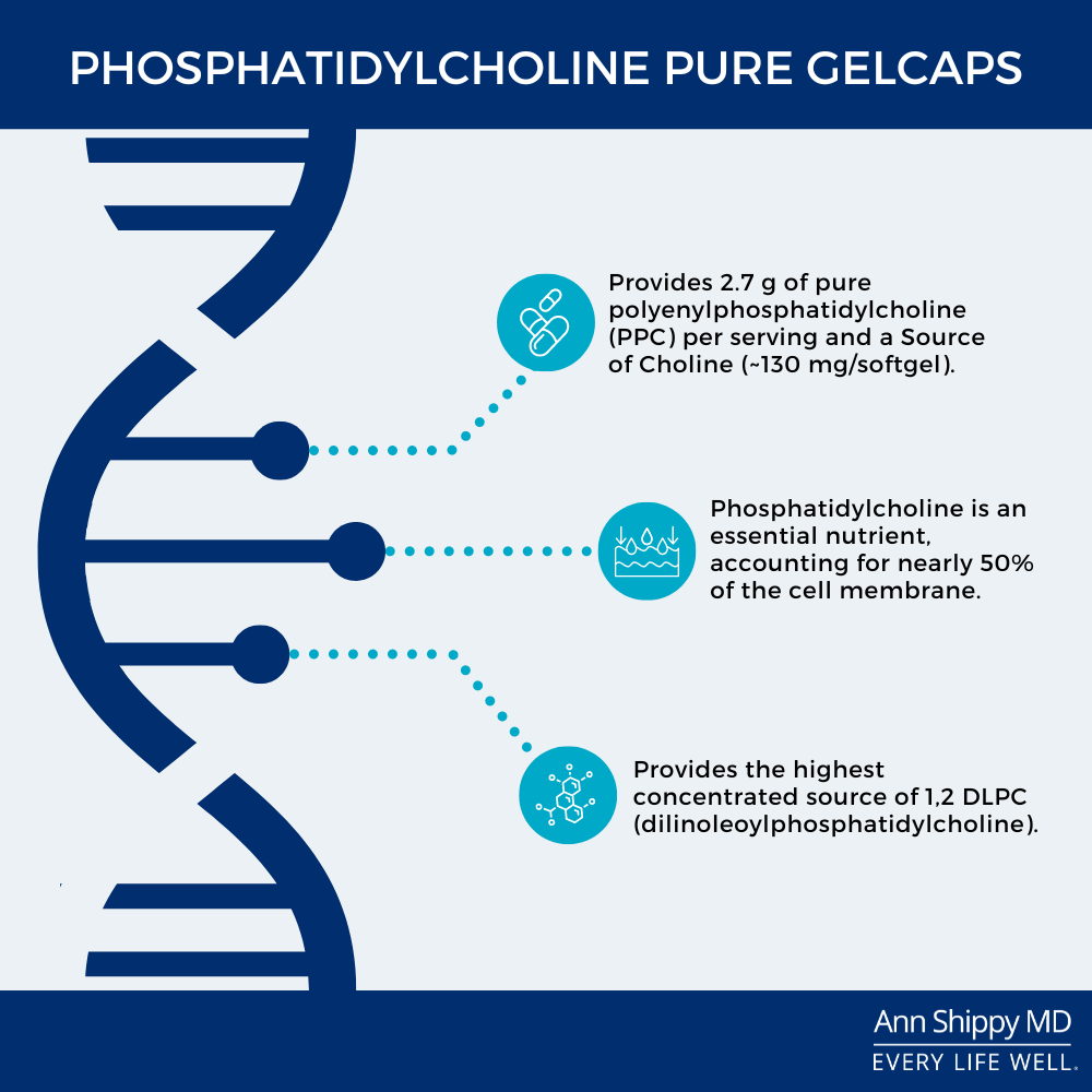 Phosphatidylcholine Pure Gelcaps provides 2.7 g of pure polyenylphosphatidylcholine (PPC) per serving plus the highest concentrated source of 1,2 DLPC (dilinoleoylphosphatidylcholine).