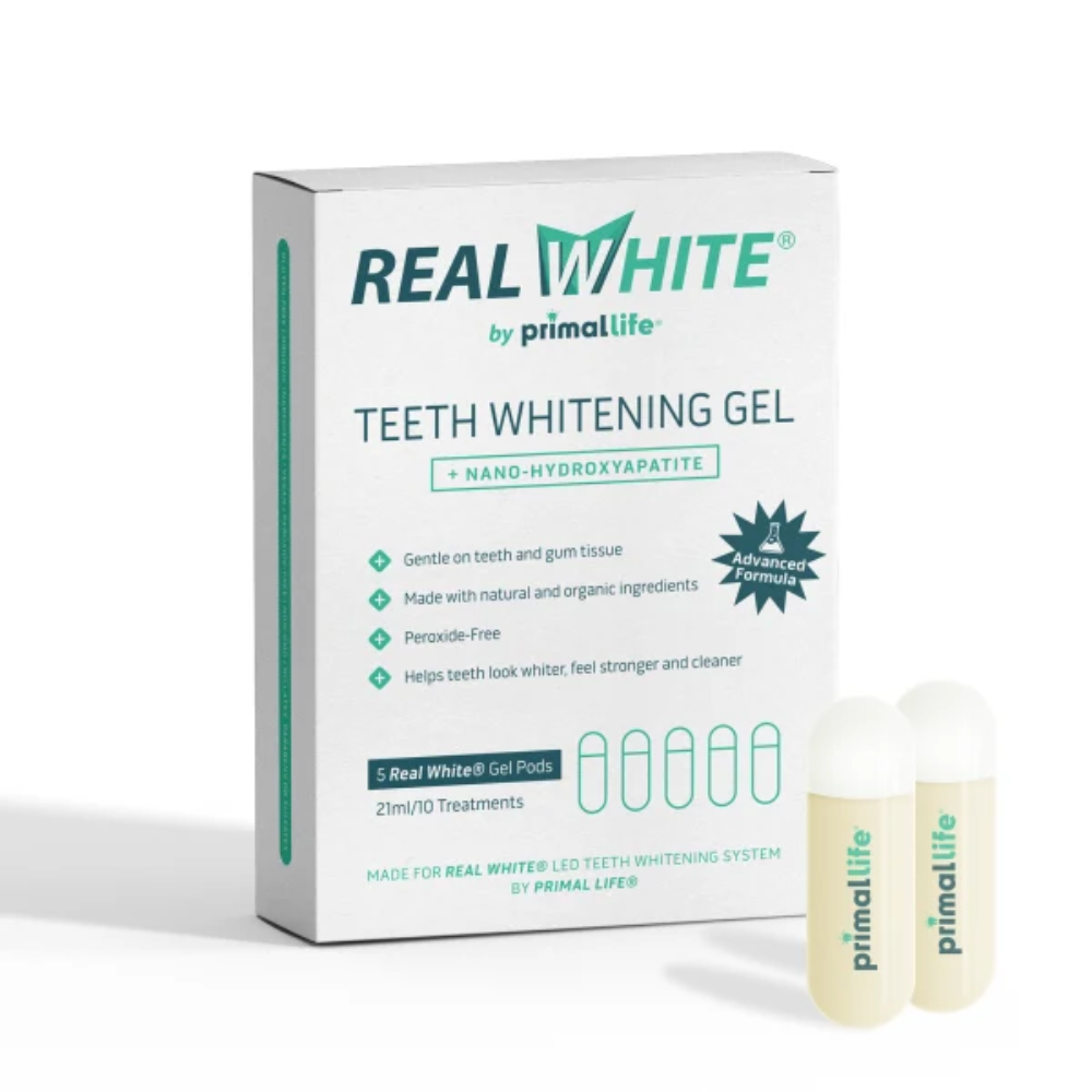 Our Real White Gel is made with the whitening power of extra virgin olive oil, hydroxyapatite, 15 essential oils, two different clays, and charcoal to intensify your bright smile. Olea Europaea (Extra Virgin Olive) Fruit Oil*, Solum Diatomeae (Diatomaceous Earth) Clay*, Bentonite, Phthalimidoperoxycaproic Acid (PAP), Mentha Piperita (Peppermint) Oil*, Nano-Hydroxyapatite, White Activated Charcoal, Methyl Salicylate (Wintergreen) Oil*, Mentha Viridis (Spearmint) Leaf Oil*, Melaleuca Alternifolia (Tea Tree) Leaf Oil*, Eugenia Caryophyllata (Clove) Bud) Oil*, Citrus Medica Limonum (Lemon) Peel Oil*, Cinnamomum Zeylanicum (Cinnamon) Leaf Oil*, Commiphora Myrrha (Myrrh) Oil*, Lavandula Angustifolia (Lavender) Oil*, Eucalyptus Globulus (Eucalyptus) Leaf Oil*, Cupressus Sempervirens (Cypress) Leaf Oil*, Anthemis Nobilis (Chamomile) Flower Oil*. *Certified Organic