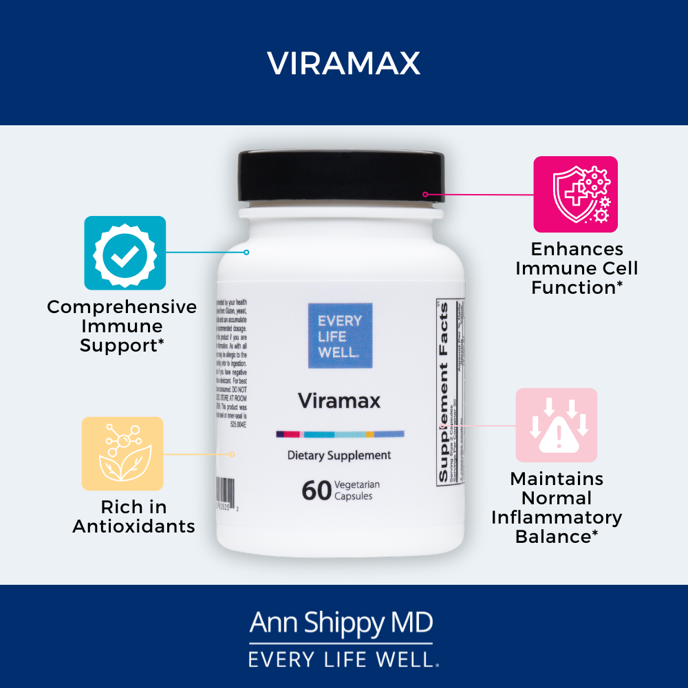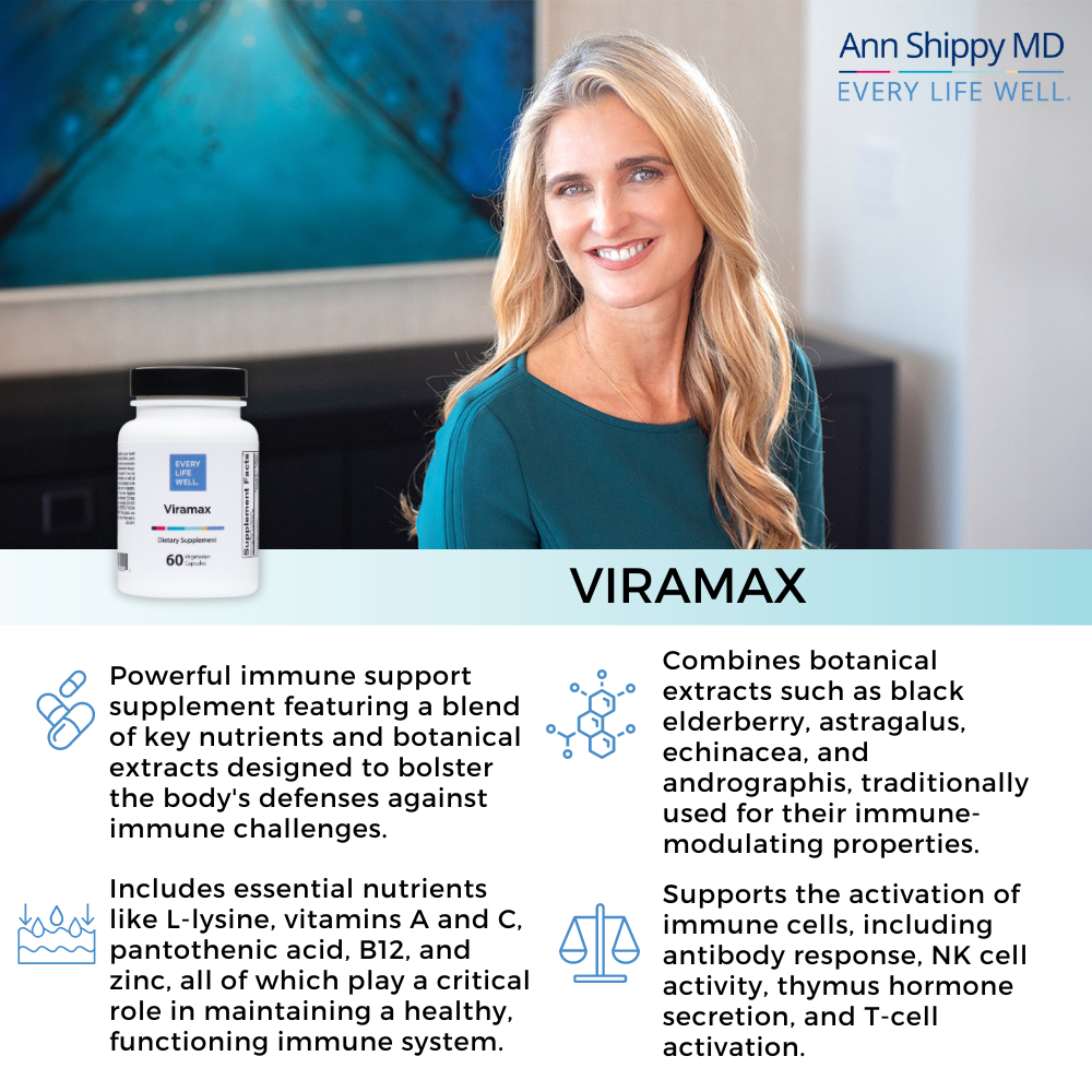 Viramax includes a powerful combination of key nutrients and botanical extracts that provide support for immune challenges.Viramax also includes the synergistic blend of botanical extracts black elderberry, astragalus, echinacea, and andrographis, all of which have been used traditionally for their clinically effective immune- modulating properties.