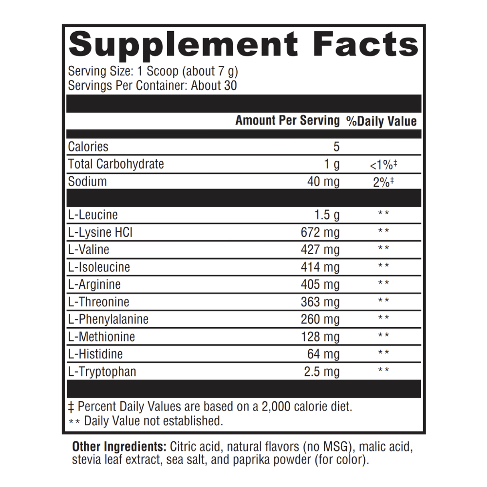 This formula includes arginine, a conditionally essential amino acid, which becomes especially important during stress, rapid growth, or intense physical activity. Arginine supports blood flow by converting into nitric oxide, enhances nutrient delivery to muscles, and aids in protein metabolism—making it a valuable addition to support recovery and endurance.*
