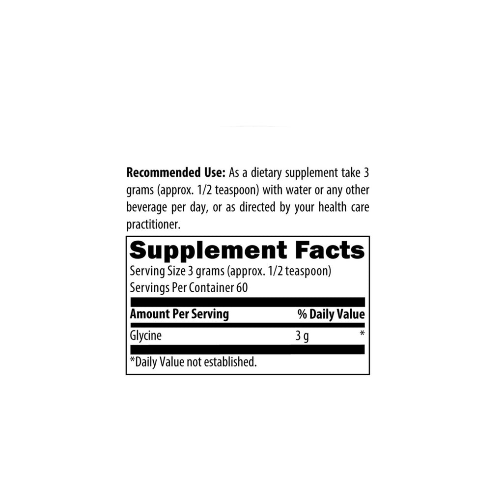 Pure Glycine Powder offers the amino acid glycine in a powder form for flexible dosing and convenience. Although glycine is synthesized in the human body, supplemental amounts may be beneficial to help meet the body’s many biological and metabolic demands for this amino acid.