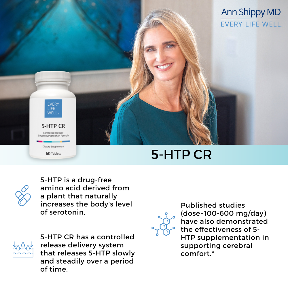 Published studies (dose~100-600 mg/day) have also demonstrated the effectiveness of 5-HTP supplementation in supporting cerebral comfort.*