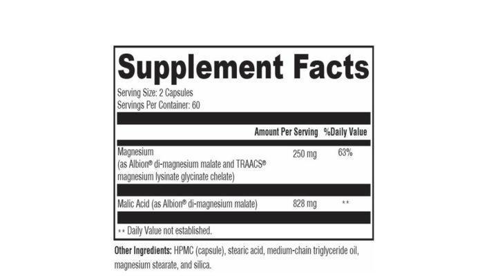 • 828 mg Malic Acid (as Albion di-magnesium malate)