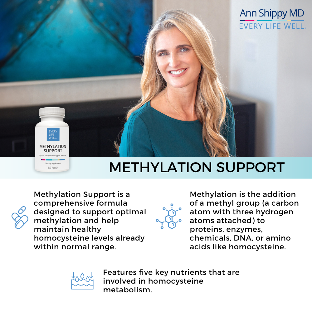 Methylation Support is a comprehensive formula designed to support optimal methylation and help maintain healthy homocysteine levels already within normal range.