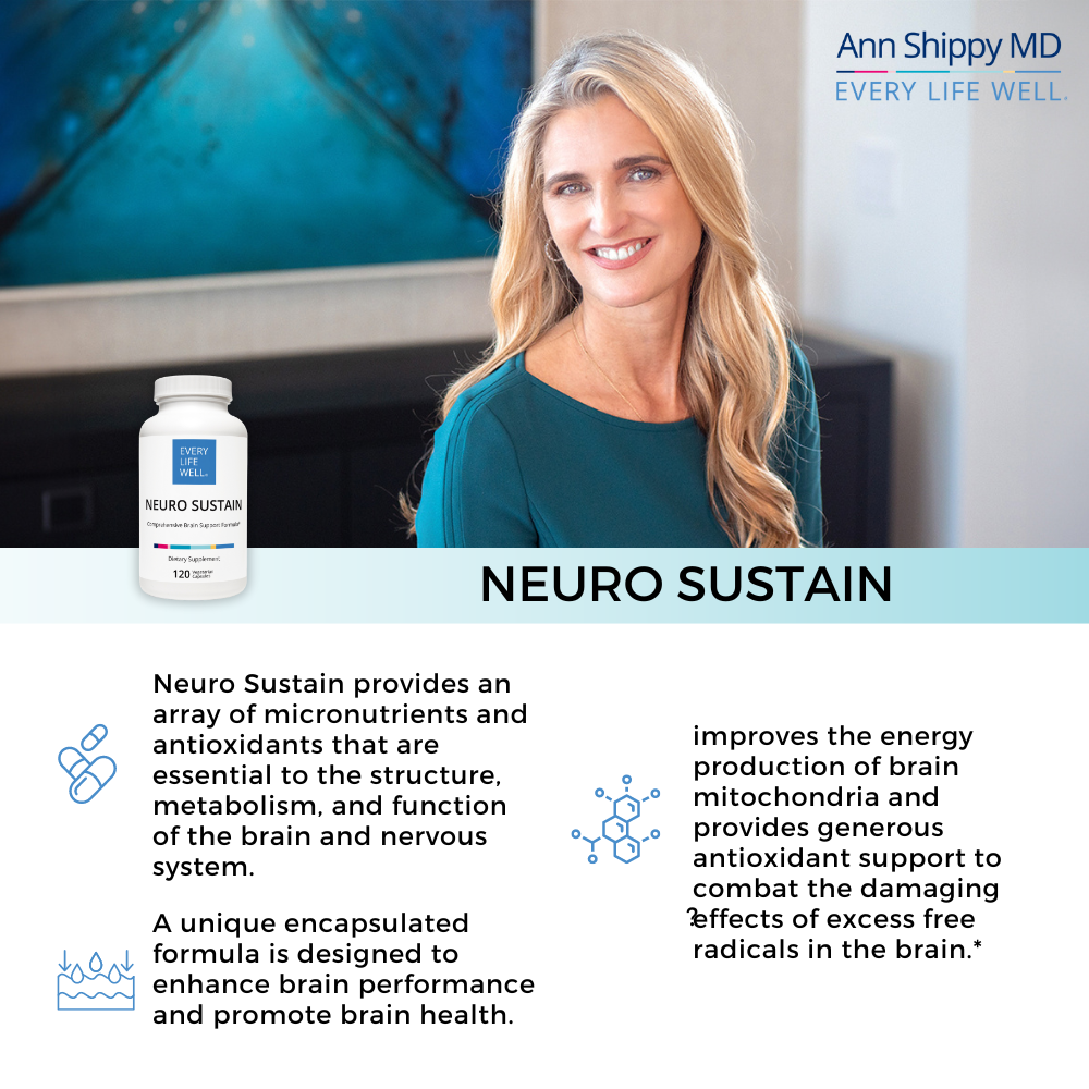A key component of a complete program to ensure optimal brain function, Neuro Sustain improves the energy production of brain mitochondria and provides generous antioxidant support to combat the damaging effects of excess free radicals in the brain.*