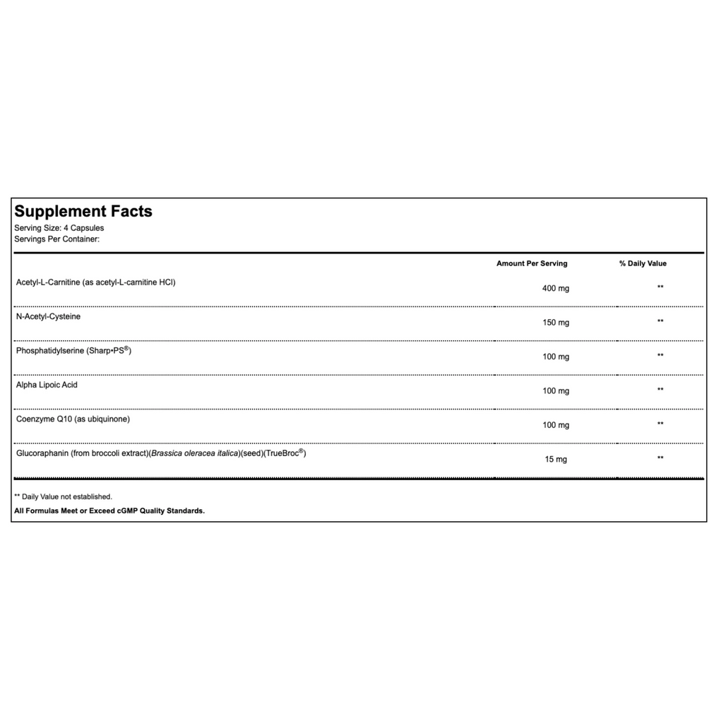 Neuro Sustain improves the energy production of brain mitochondria and provides generous antioxidant support to combat the damaging effects of excess free radicals in the brain.*